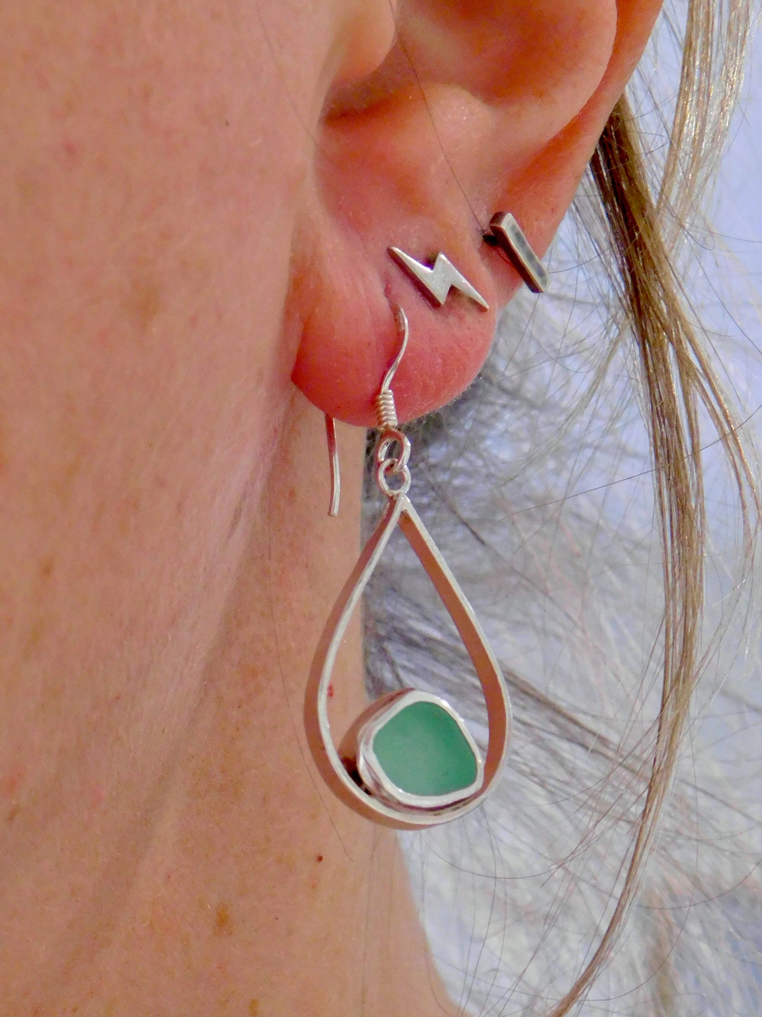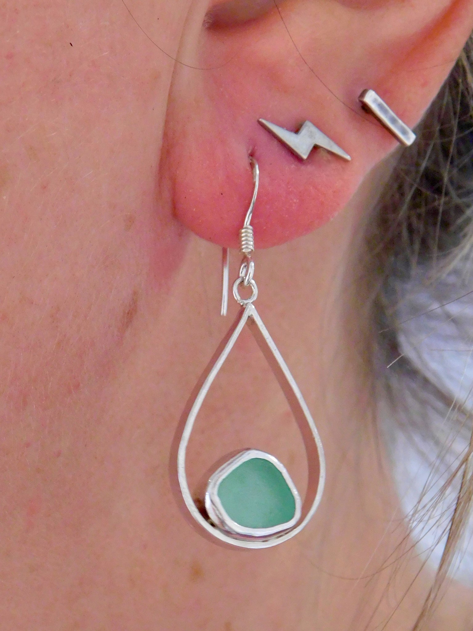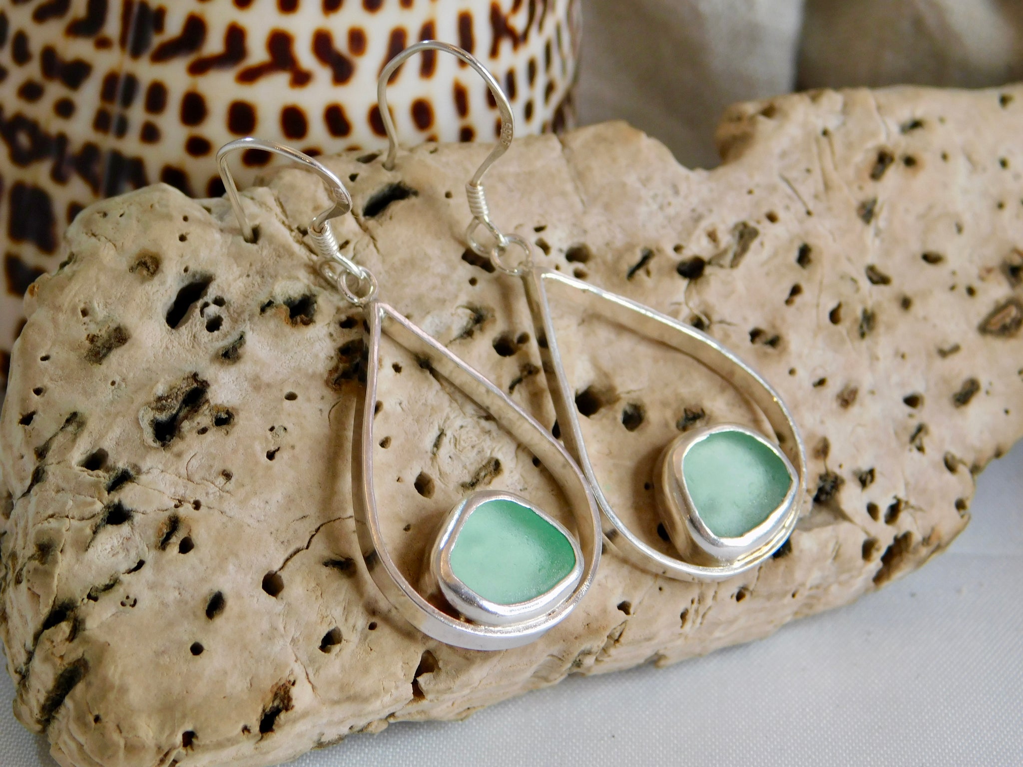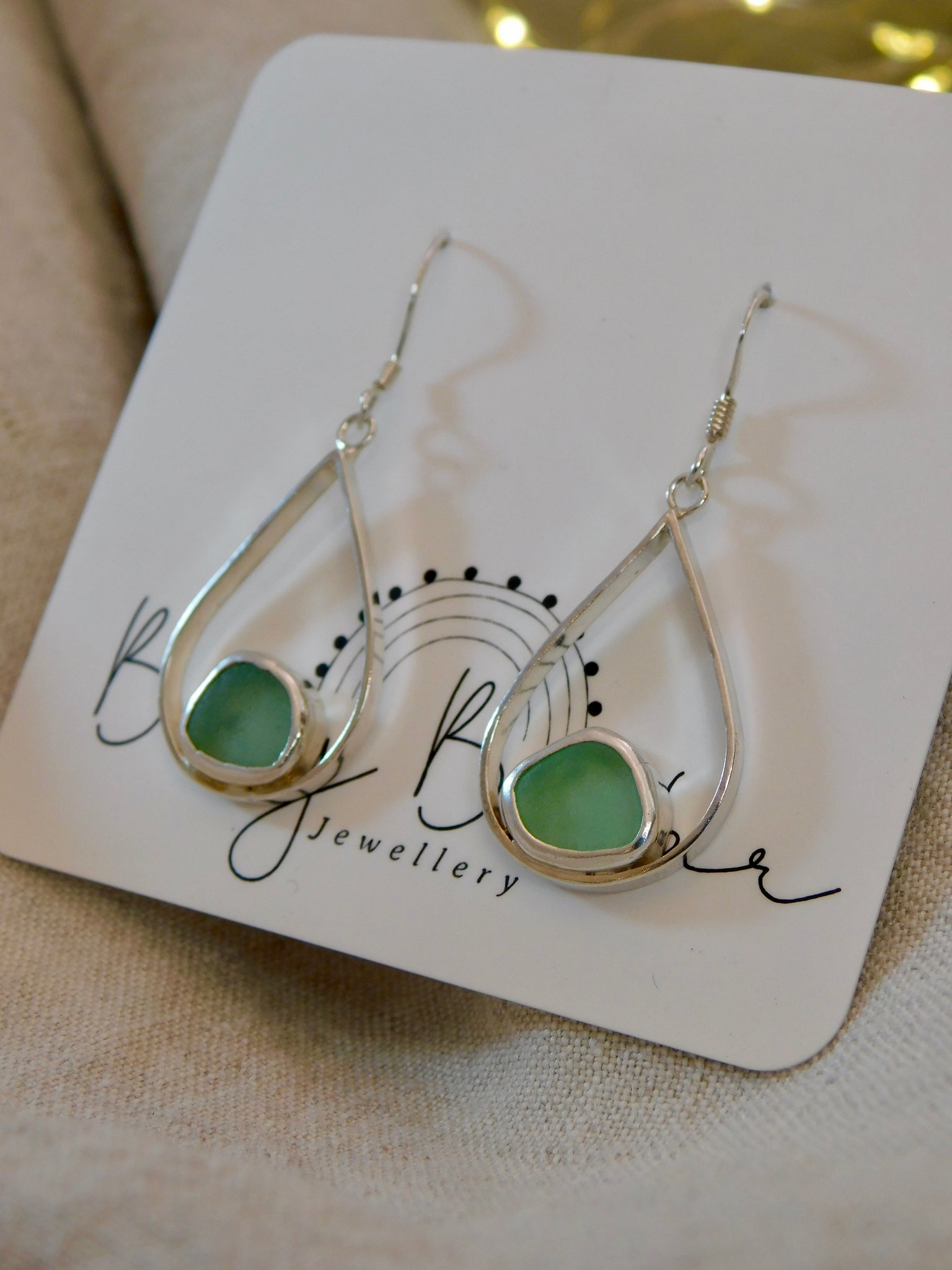 Aqua Sea Glass Pear Shaped Sterling Silver Dangles