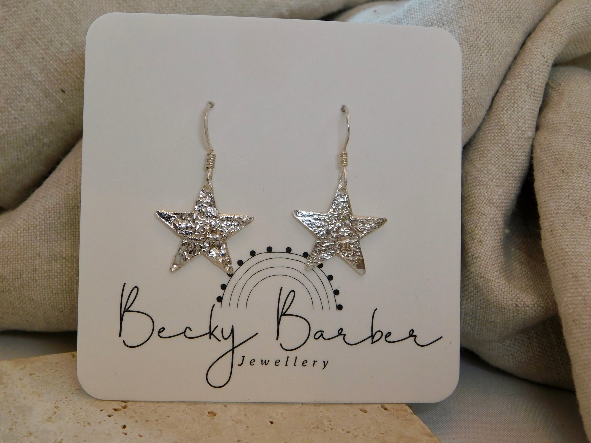 • Load image into Gallery viewer, Large Reticulated Star Sterling Silver Dangles