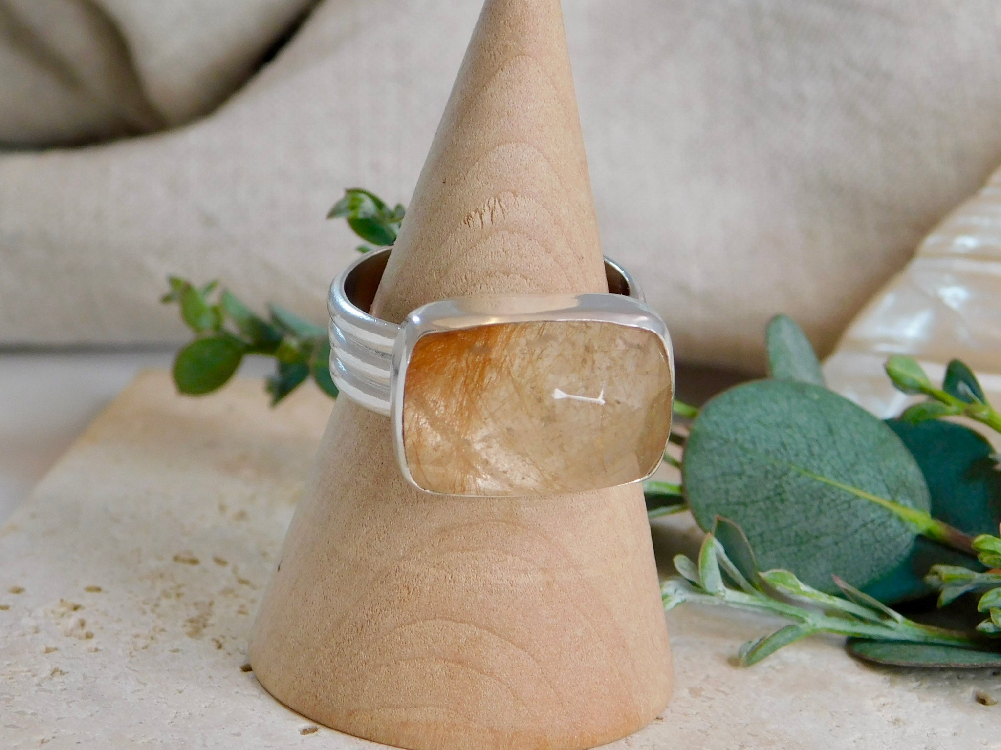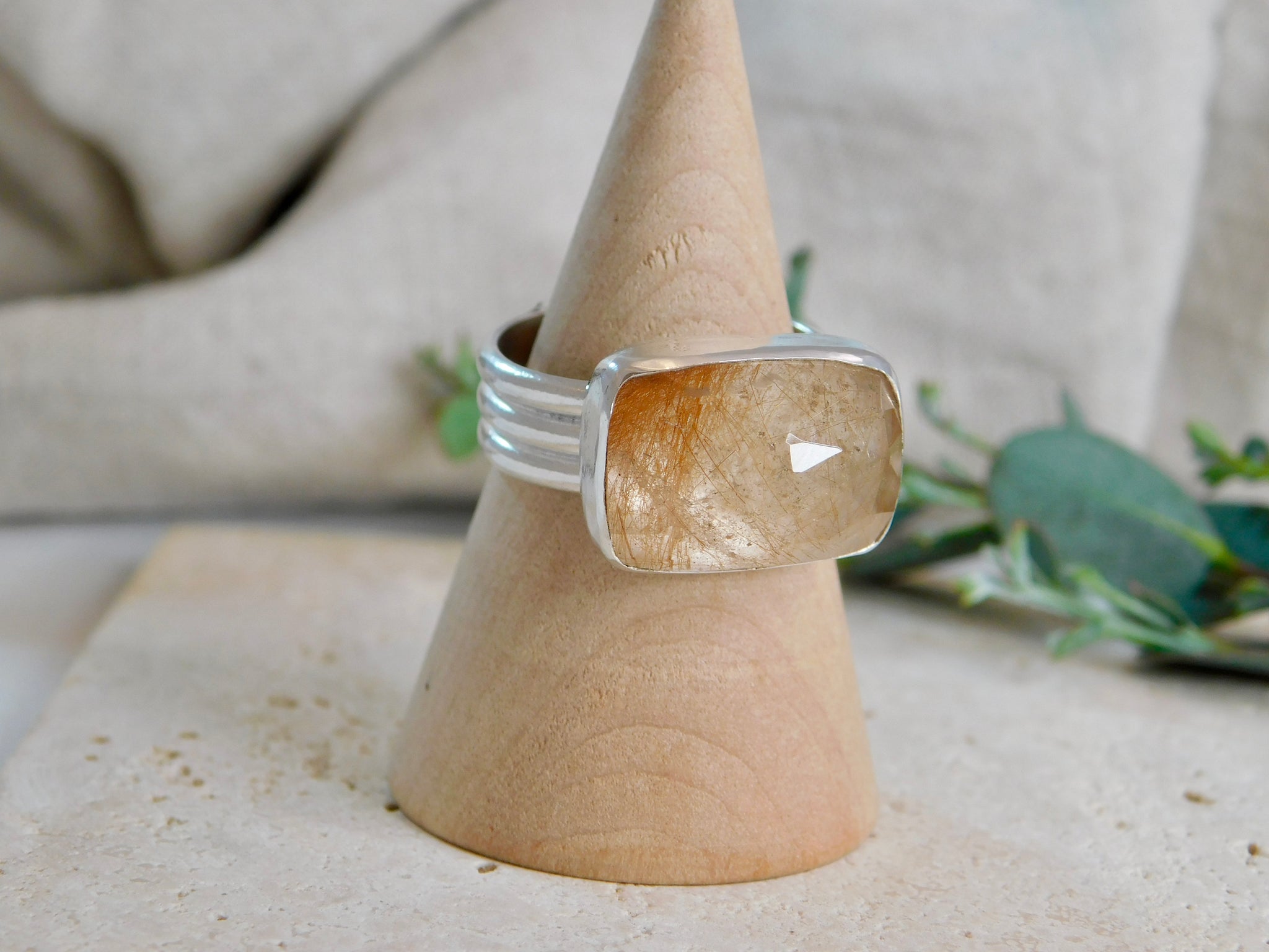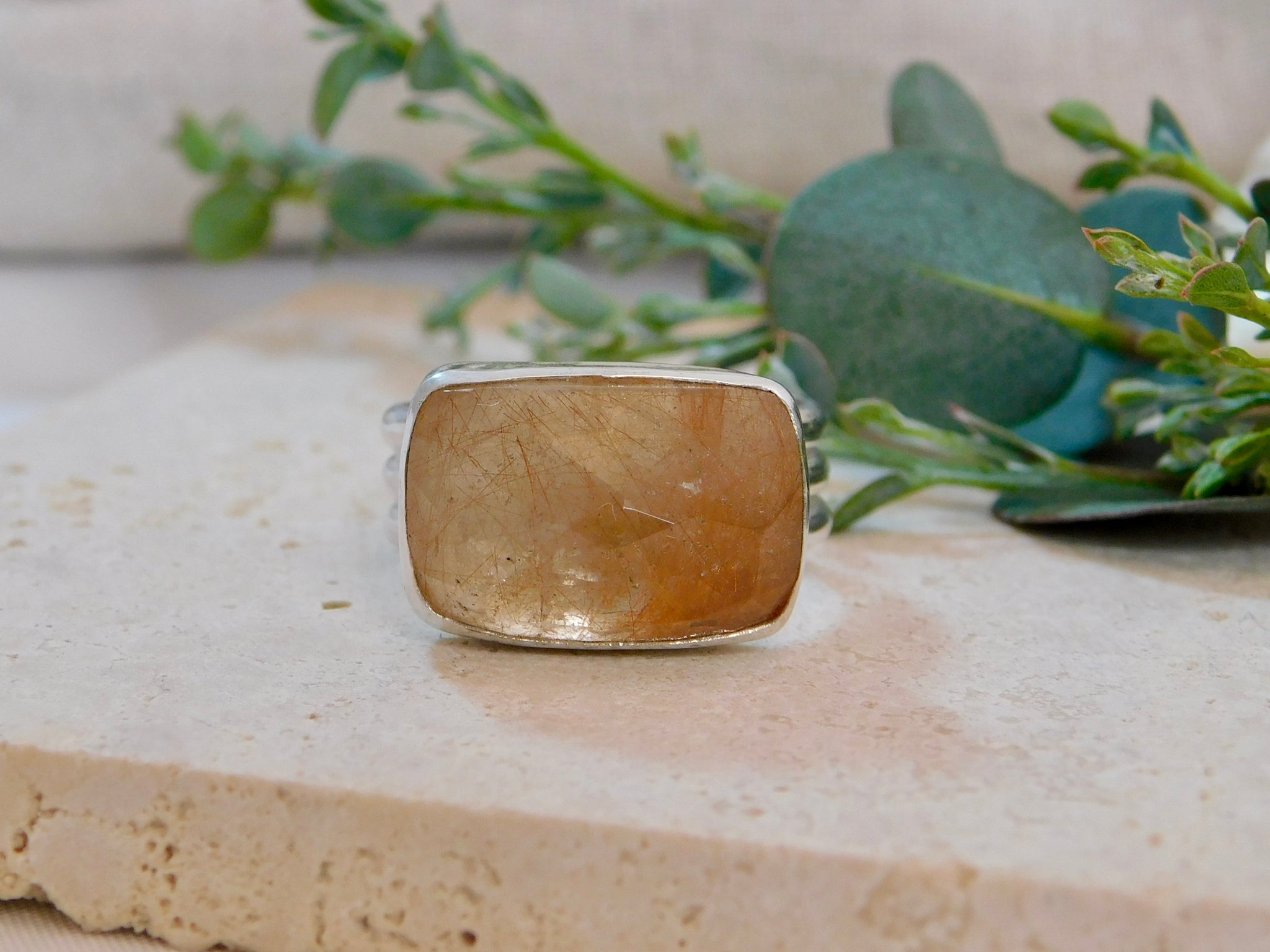 Rectangle Rutile Sterling Silver Ring
