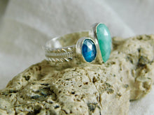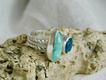 I have set these beautiful stones on a medium width sterling silver band, made from a chunky, patterned sterling silver wire giving this ring a lovely boho vibe.